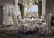 ACME Dresden Dining Table (Round), Vintage Bone White, 60"Dia, 165lbs. Acme is proud to present a new addition to our exclusive Dresden dining collection! This exquisite dining table in vintage bone white will look lovely in your home, with ornate carvings and raised floral motifs on its apron and pedestal base, which ends in oversized claw feet for a sense of grandeur. The matching side and arm chairs feature arched backs and PU upholstery that wraps around the outside seatback as well as the apron for a luxurious feel. Each piece in this collection has a hand-brushed finish that is meticulously applied to create an antiqued look. Complete your formal dining area with matching buffet and curio cabinet with touch light for the gorgeously appointed home of your dreams. Features: - Exclusive Design - Round Pedestal Table - Fixed Top (No Extension) - Wooden Frame, Poly-Resin Raised Scrolled Floral Motifs, Antique Hand-Brushed Finish -- MATCHING CHAIRS Padded Seat & Back: PU, Nailhead Trim - Arched Style Backrest - Oversized Claw Leg - Matching Hutch-Buffet & Curio Cabinet with Touch Light - Buffet Drawer: GLIDE Side Metal (Full Ext.), DOVETAIL) English Back, Felt Lined - Collection Picardy: Available in Cherry Oak, Bone White Finish Materials: Wood, Poly-Resin, Wood Veneer