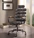 ACME Calan Executive Office Chair, Vintage Black Top Grain Leather, 22" x 27" x 42"~45"H, 33lbs. Features: - Executive Arm Office Chair (High Back) - Seat: Swivel (360 Degrees), and Adjustable Height - Padded Back & Seat: Top Grain Leather Cushion - 5-Star Base w/Casters: Metal Base - Armrest with Metal Frame Materials: Metal, Upholstered (Seat), Casters, Composite Wood